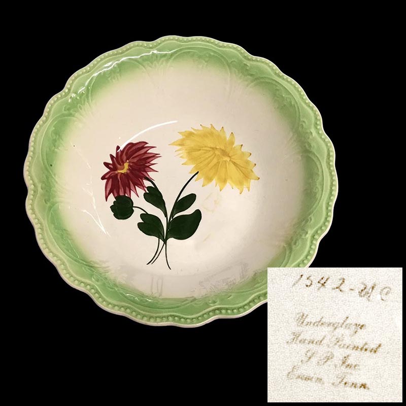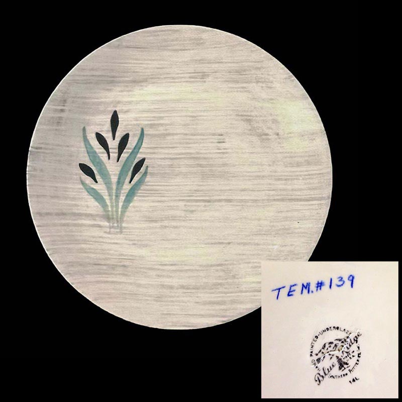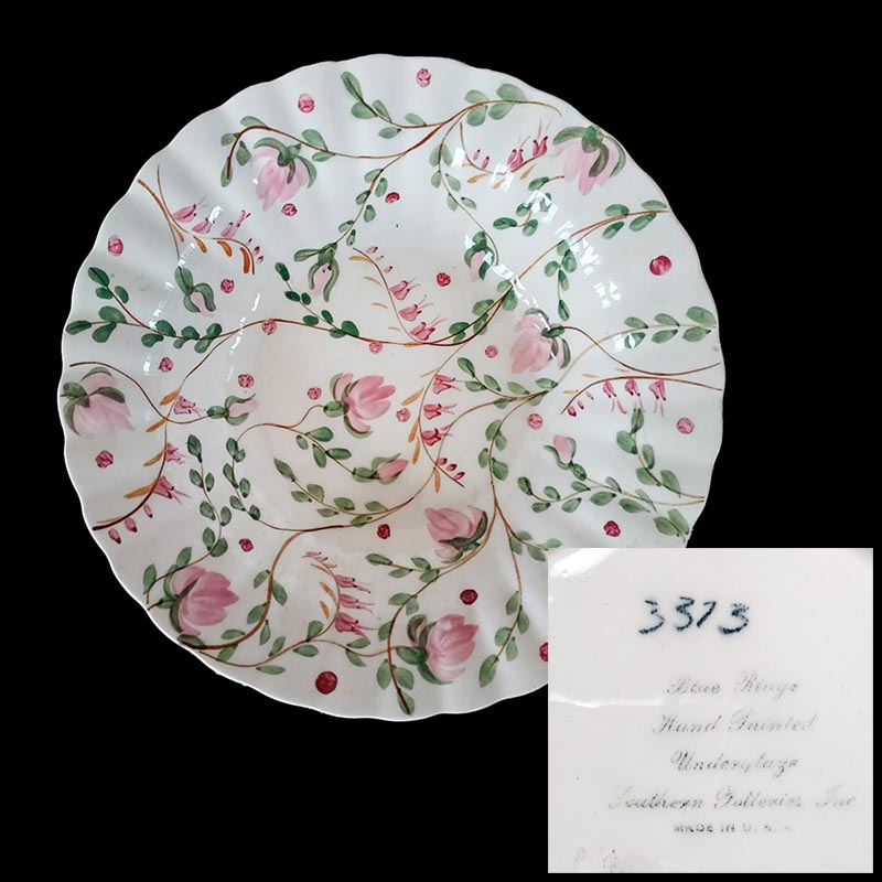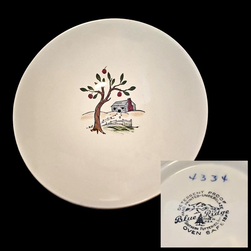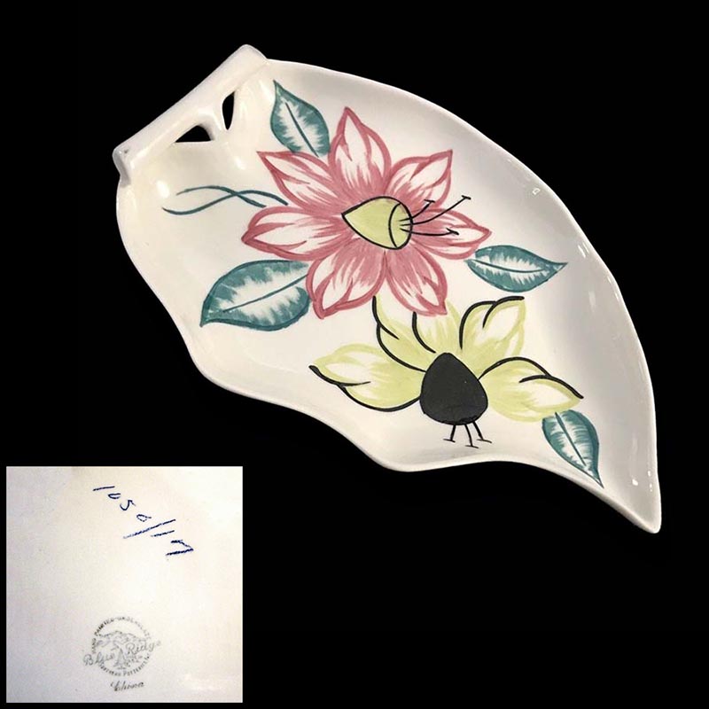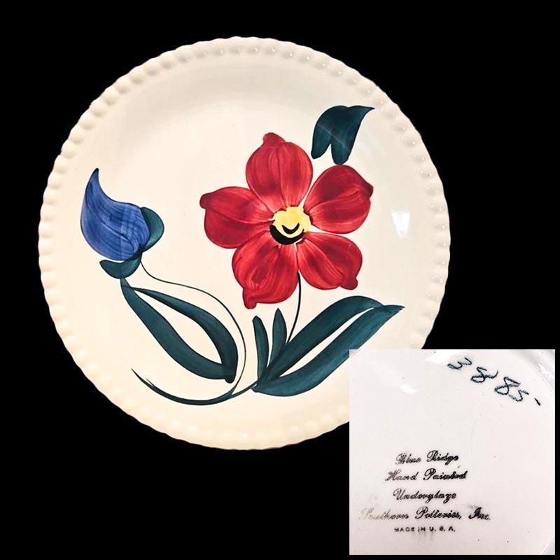 In general, these pattern names are based on the names given in John and Frances Ruffin's three books, Blue Ridge China Today, Blue Ridge China Traditions, and Blue Ridge China Treasures.My intention is to add as many pictures as possible to aid those who don't have access to any of the various Blue Ridge books, but I'll need some help to do it. If you have any pieces of a pattern for which a picture isn't shown, you can help others by sending a picture (a dinner plate works best). Also, if you have a pattern (and number) that is not shown on this page, that information would be greatly appreciated as well.